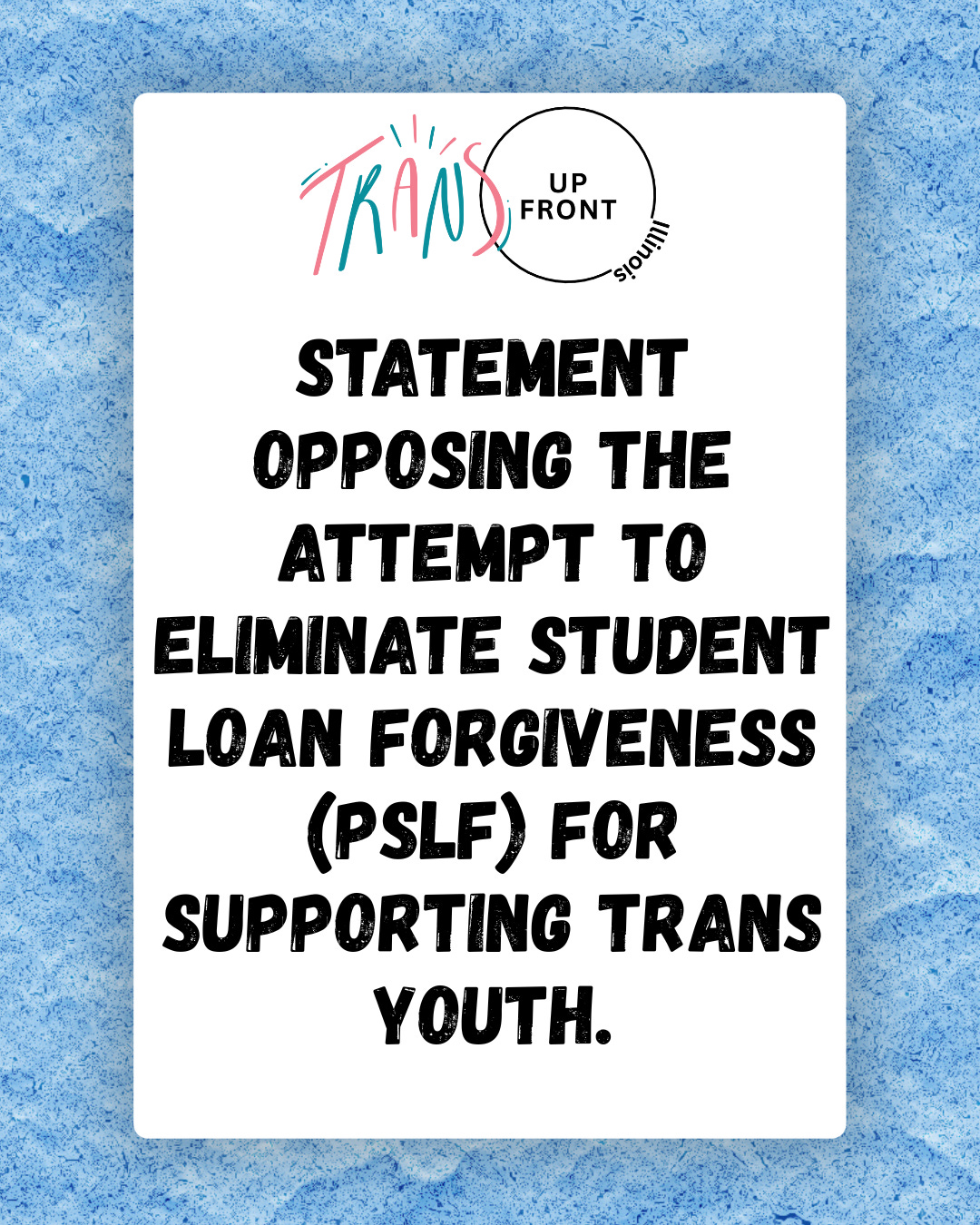 At Trans Up Front, we condemn the federal government’s attempt to reshape the Public Service Loan Forgiveness Program (PSLF). These proposed changes will not improve the PSLF nor protect borrowers. It will block huge numbers of student borrowers from receiving student loan relief and unfairly target hospitals, schools and nonprofits for simply serving trans youth.